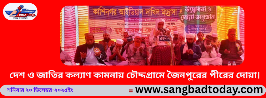 কুমিল্লার চৌদ্দগ্রামের কাশিনগর আইডিয়াল দাখিল মাদ্রাসার উদ্বোধনী অনুষ্ঠানে দেশ ও জাতির কল্যাণ কামনায় দোয়া-মোনাজাত করেছেন জৈনপুরের পীর মুহাঃ ফাররুখ ছেয়ার ছিদ্দিকী।