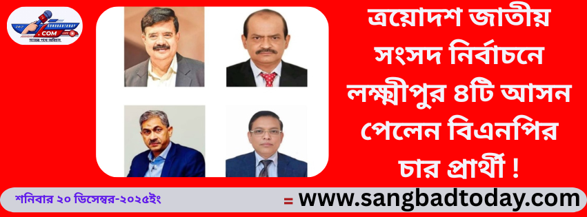 ত্রয়োদশ জাতীয় সংসদ নির্বাচনে লক্ষ্মীপুর ৪টি আসন পেলেন বিএনপির চার প্রার্থী !
