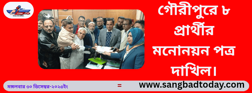 ত্রয়োদশ জাতীয় সংসদ নির্বাচনে ময়মনসিংহ-৩ গৌরীপুরে আসনে রোববার (২৮ ডিসেম্বর/২৫) মনোনয়নপত্র সংগ্রহ করেন ৮জন।