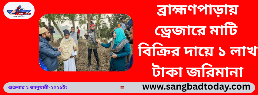 কুমিল্লার ব্রাহ্মণপাড়া উপজেলার চান্দলা ইউনিয়নের পদুয়া এলাকায় ড্রেজার মেশিন দিয়ে ফসলি জমি কেটে মাটি বিক্রির দায়ে ভ্রাম্যমাণ আদালতের মাধ্যমে একজনকে ১ লক্ষ টাকা জরিমানা করা হয়।