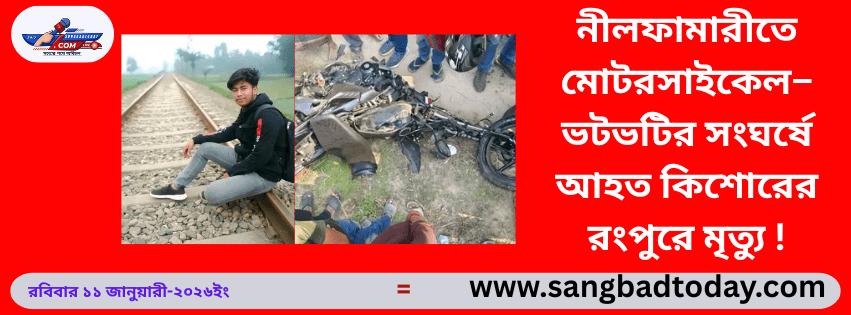 নীলফামারীতে মোটরসাইকেল–ভটভটির সংঘর্ষে আহত কিশোরের রংপুরে মৃত্যু !