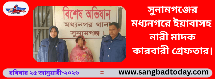 সুনামগঞ্জের মধ্যনগরে ইয়াবাসহ নারী মাদক কারবারী গ্রেফতার