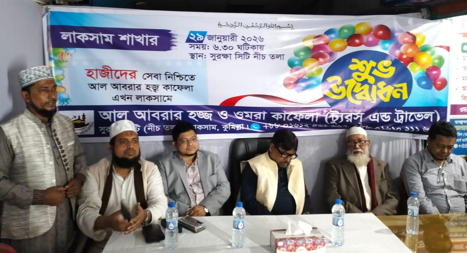 বৃহস্পতিবার (২৯ জানুয়ারি ২০২৬) সন্ধ্যা সাড়ে ৬টায় আল আবরার হজ্ব কাফেলা ট্যুরস এন্ড ট্রাভেলস-এর লাকসাম শাখার উদ্বোধন অনুষ্ঠান সফলভাবে সম্পন্ন হয়েছে।
