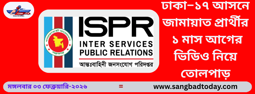 ঢাকা–১৭ আসনে জামায়াতে ইসলামীর প্রার্থী ডা. এস এম খালিদুজ্জামানকে কেন্দ্র করে ক্যান্টনমেন্ট এলাকায় এক মাস আগে ঘটে যাওয়া ‘অনাকাঙ্ক্ষিত ভিডিও’র বিষয়টি আগেই মীমাংসিত হয়েছিল বলে জানিয়েছে আন্তঃবাহিনী জনসংযোগ পরিদপ্তর (আইএসপিআর)।