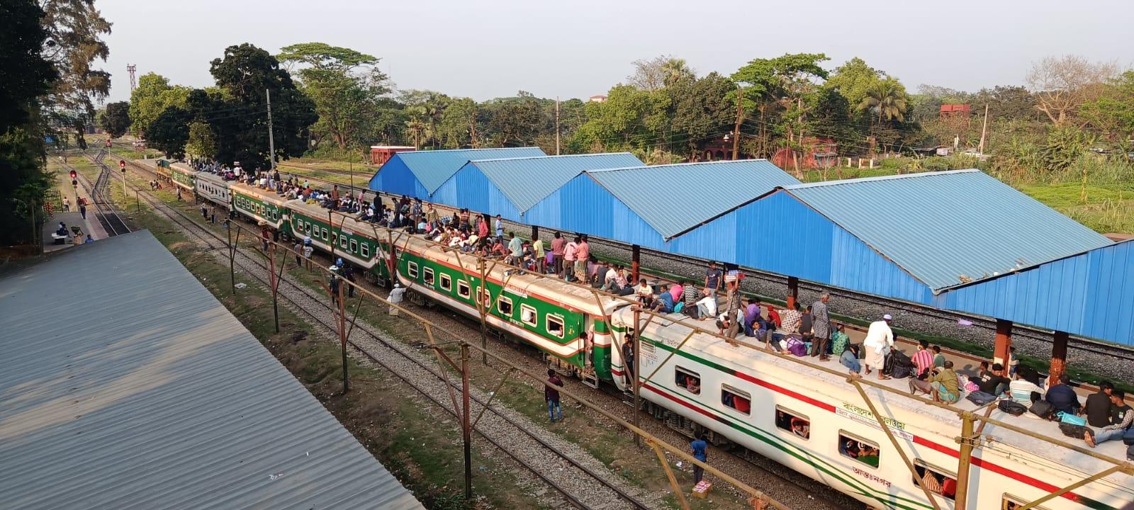 ঢাকা ও চট্টগ্রাম থেকে ছেড়ে আসা প্রতিটি ট্রেনেই যাত্রীদের তিল ধারণের ঠাঁই নেই।