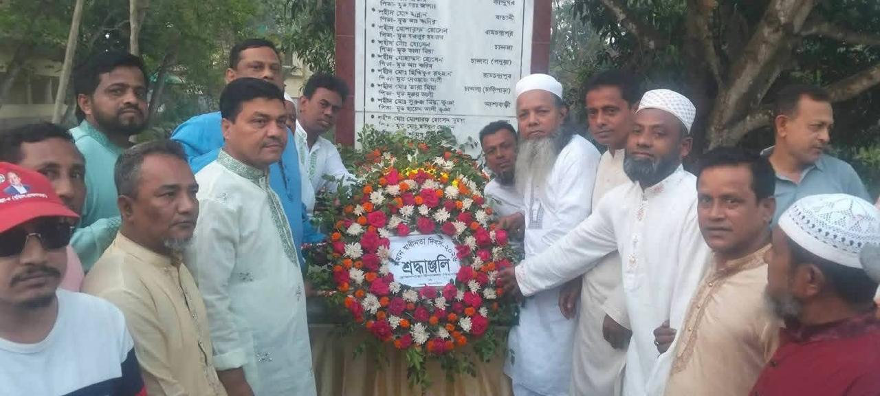 উপজেলা বিএনপিঃ উপজেলা বিএনপির সিনিয়র সহ সভাপতি মহসিন কবির সরকার ও সাবেক সাধারণ সম্পাদক সরকার জহিরুল হক মিঠুনের নেতৃত্বে শহীদ মিনারে পুষ্পমাল্য অর্পণ করে শ্রদ্ধা জ্ঞাপন করেন।