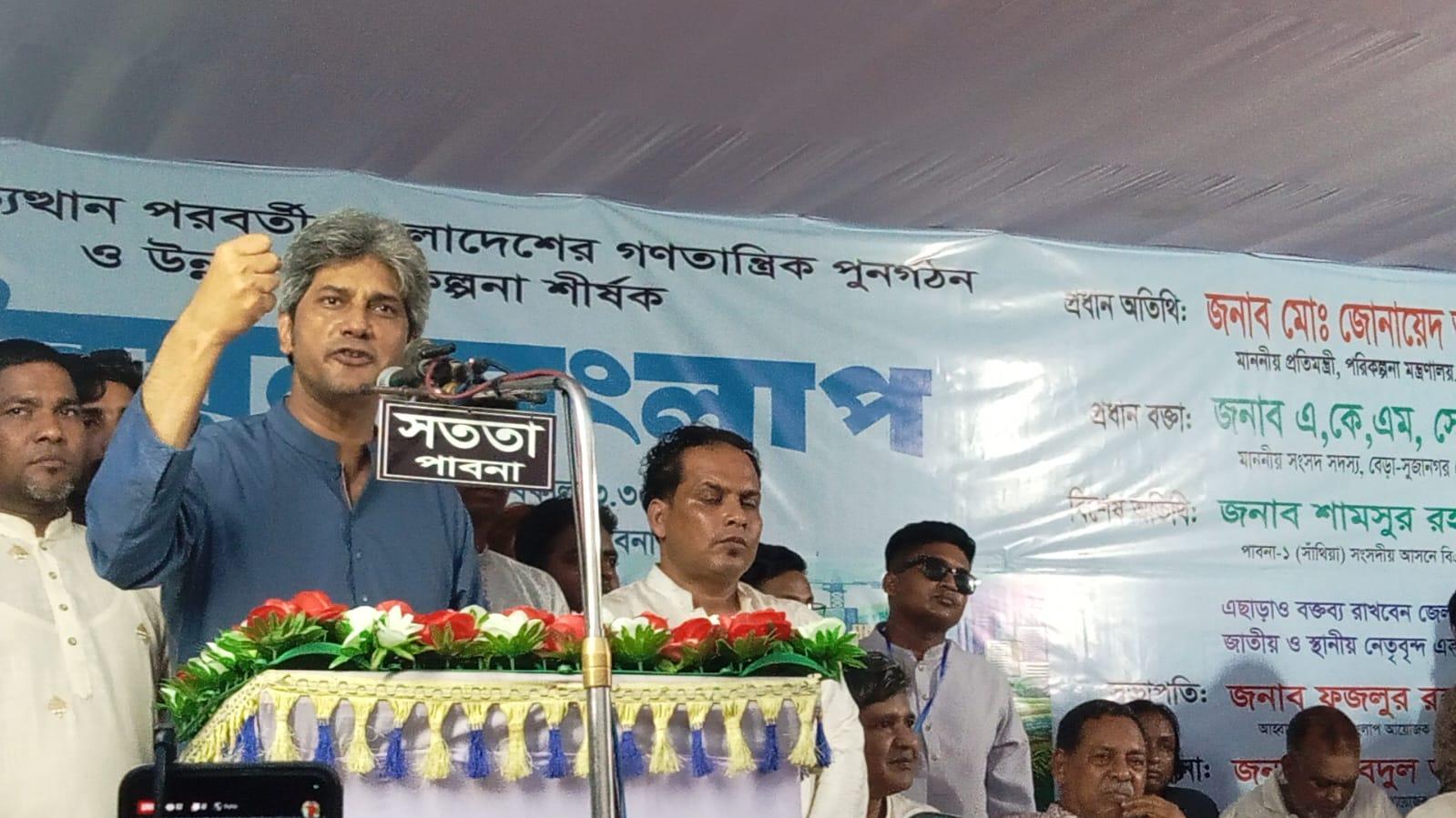 সদস্য সচিব, উন্নয়ন সংলাপ আয়োজক কমিটির আবদুল আলিমের পরিচালনায় প্রধান অতিথির বক্তব্য সাকি বলেন, বাংলাদেশ শাসন ব্যবস্থা বদলে পথে আছে।