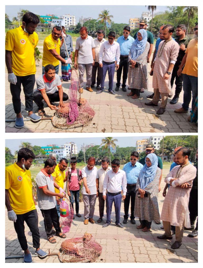 এসময় উপস্থিত ছিলেন উপজেলা প্রাণি সম্পদ কর্মকর্তা ডাঃ কর্ণ চন্দ্র মল্লিক, উপজেলা কৃষি অফিসার মোঃ আল-আমীন, পৌরসভার মেডিকেল অফিসার মোঃ ইমরানসহ অন্যান্য কর্মকর্তাগন।